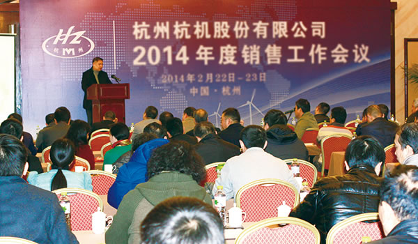 杭機股份2014年度銷售工作會議于2月22日—23日在杭州藍天清水灣國際大酒店舉行,來自全國各地的五十多家經銷公司的近80名代表參加了會議。