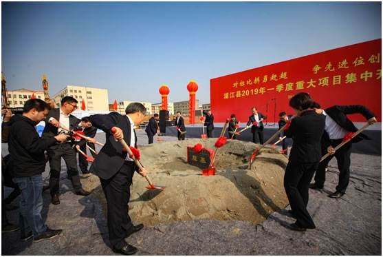 浦江縣委程天云書記對浙江杭機在浦江大地上再鑄輝煌充滿期望。他深情地說:“百年樹木,百年杭機”,在中國制造業(yè)發(fā)展中有著濃墨重彩一筆的浙江杭機,歷經半個多世紀的風雨洗禮,相信在浦江這片發(fā)展熱土上,將煥發(fā)新的生機和活力。程書記表示,浦江縣委縣政府以及各相關單位都將秉持“不叫不到,隨叫隨到,服務周到,說到做到”的服務精神,把企業(yè)的事辦好。相信浙江杭機能在浦江經濟發(fā)展中起到引領作用。隨后,程天云書記宣布:奠基儀式開始!