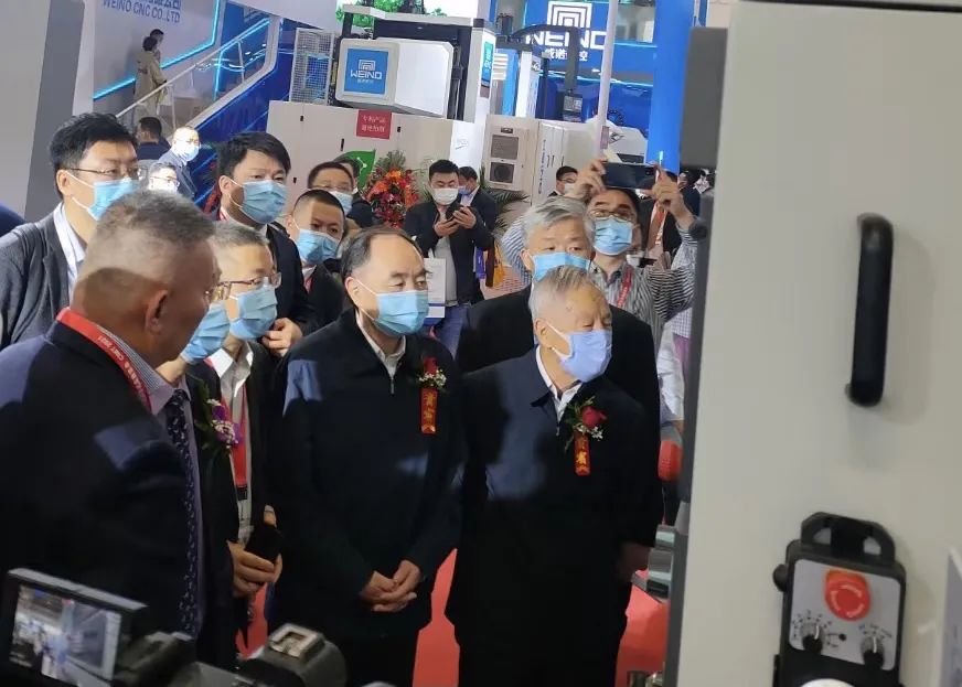 上午10時(shí),中國(guó)機(jī)床工具工業(yè)協(xié)會(huì)執(zhí)行副理事長(zhǎng)兼秘書(shū)長(zhǎng)王黎明、中國(guó)機(jī)床工具工業(yè)協(xié)會(huì)監(jiān)事長(zhǎng)王旭陪同原教育部部長(zhǎng)、中國(guó)工程院院長(zhǎng)周濟(jì),原機(jī)械工業(yè)部副部長(zhǎng)、國(guó)務(wù)院派駐國(guó)有重點(diǎn)大型企業(yè)監(jiān)事會(huì)原主席賈成炳等一行來(lái)到杭機(jī)展臺(tái)前,杭機(jī)股份董事長(zhǎng)孫益民、總經(jīng)理董凱夫向各位貴賓匯報(bào)了杭機(jī)在解決航發(fā)葉片加工等卡脖子問(wèn)題上取得的成果,目前這一成果已批量提供給航發(fā)用戶。周濟(jì)院長(zhǎng)長(zhǎng)期致力于機(jī)械設(shè)計(jì)、數(shù)控技術(shù)與智能制造的教學(xué)和研究工作,作為行業(yè)的專家,他耐心詢問(wèn)杭機(jī)的發(fā)展現(xiàn)狀和產(chǎn)品結(jié)構(gòu)。賈副部長(zhǎng)饒有興致地走近五軸數(shù)控強(qiáng)力成型磨床,近距離觀察機(jī)床內(nèi)部結(jié)構(gòu),孫益民董事長(zhǎng)和董凱夫總經(jīng)理向幾位領(lǐng)導(dǎo)介紹了兩臺(tái)展品的適用范圍和產(chǎn)品性能,以及杭機(jī)目前參與的國(guó)家04專項(xiàng)的進(jìn)展情況,幾位貴賓勉勵(lì)杭機(jī)要投入更多精力到產(chǎn)品研發(fā)上,承擔(dān)起為國(guó)內(nèi)航空航天、高精度數(shù)控機(jī)床功能部件及能源裝備中的關(guān)鍵零部件的高精、高效加工的企業(yè)責(zé)任。