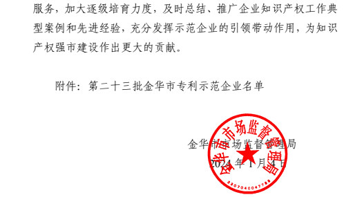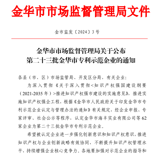 近日,經(jīng)金華市市政府批準(zhǔn),金華市市場監(jiān)督管理局公布了2023年金華市專利示范企業(yè)認(rèn)定結(jié)果,綜合考量企業(yè)知識產(chǎn)權(quán)創(chuàng)造質(zhì)量、運(yùn)用效益、保護(hù)效果和管理效能,我司 “浙江杭機(jī)股份有限公司”入選金華市專利示范企業(yè)。