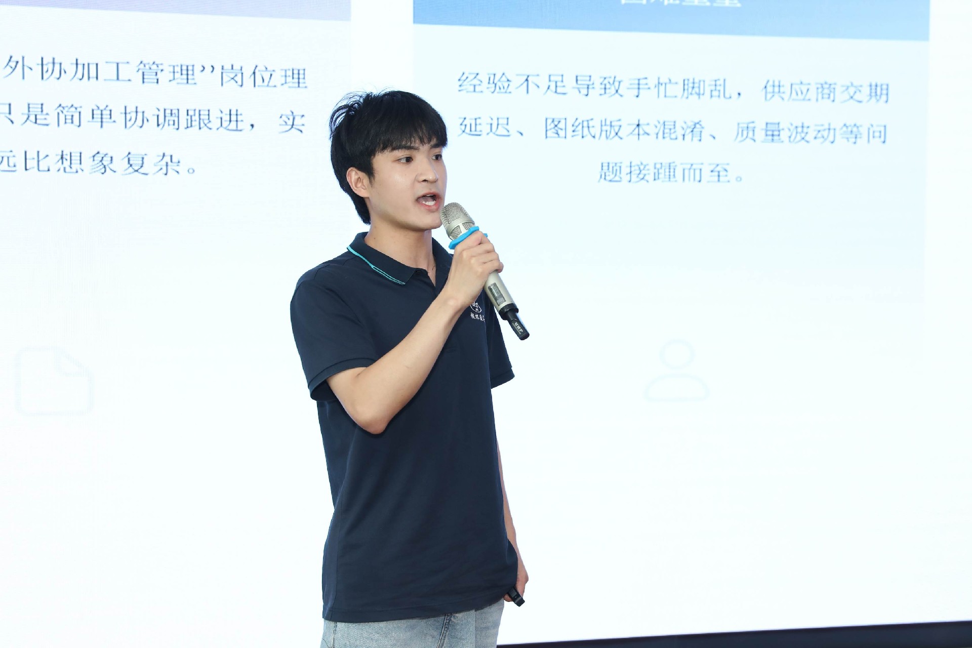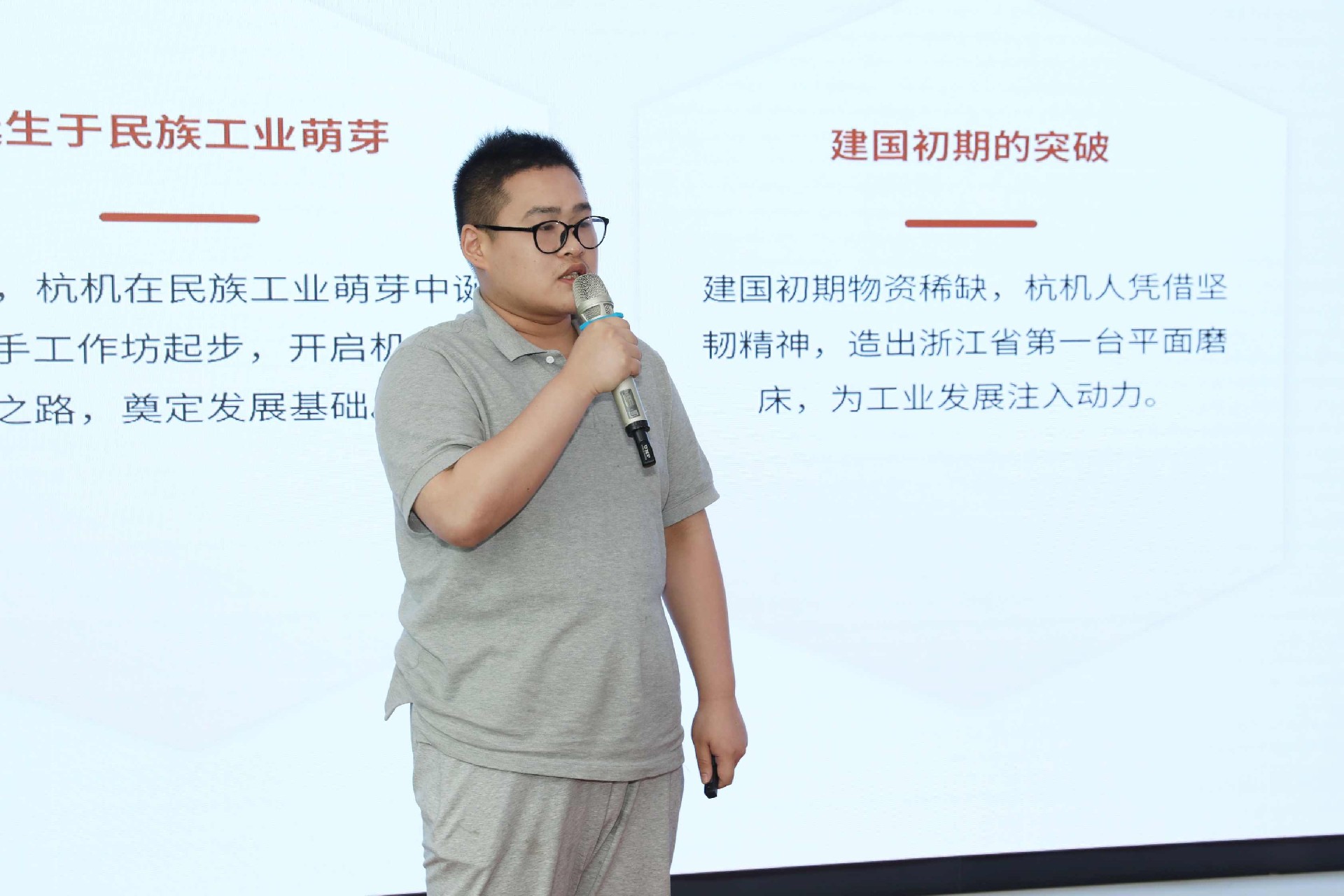 決賽現(xiàn)場,16名來自不同崗位的參賽選手依次登臺。他們中既有扎根車間三十載的老技工,也有青年研發(fā)工程師,更有新入職就感受到滿滿杭機(jī)力量的新員工。演講內(nèi)容緊扣“匠心傳承”“智造突圍”“黨員先鋒”等關(guān)鍵詞,配合多媒體視聽呈現(xiàn),引發(fā)陣陣掌聲。